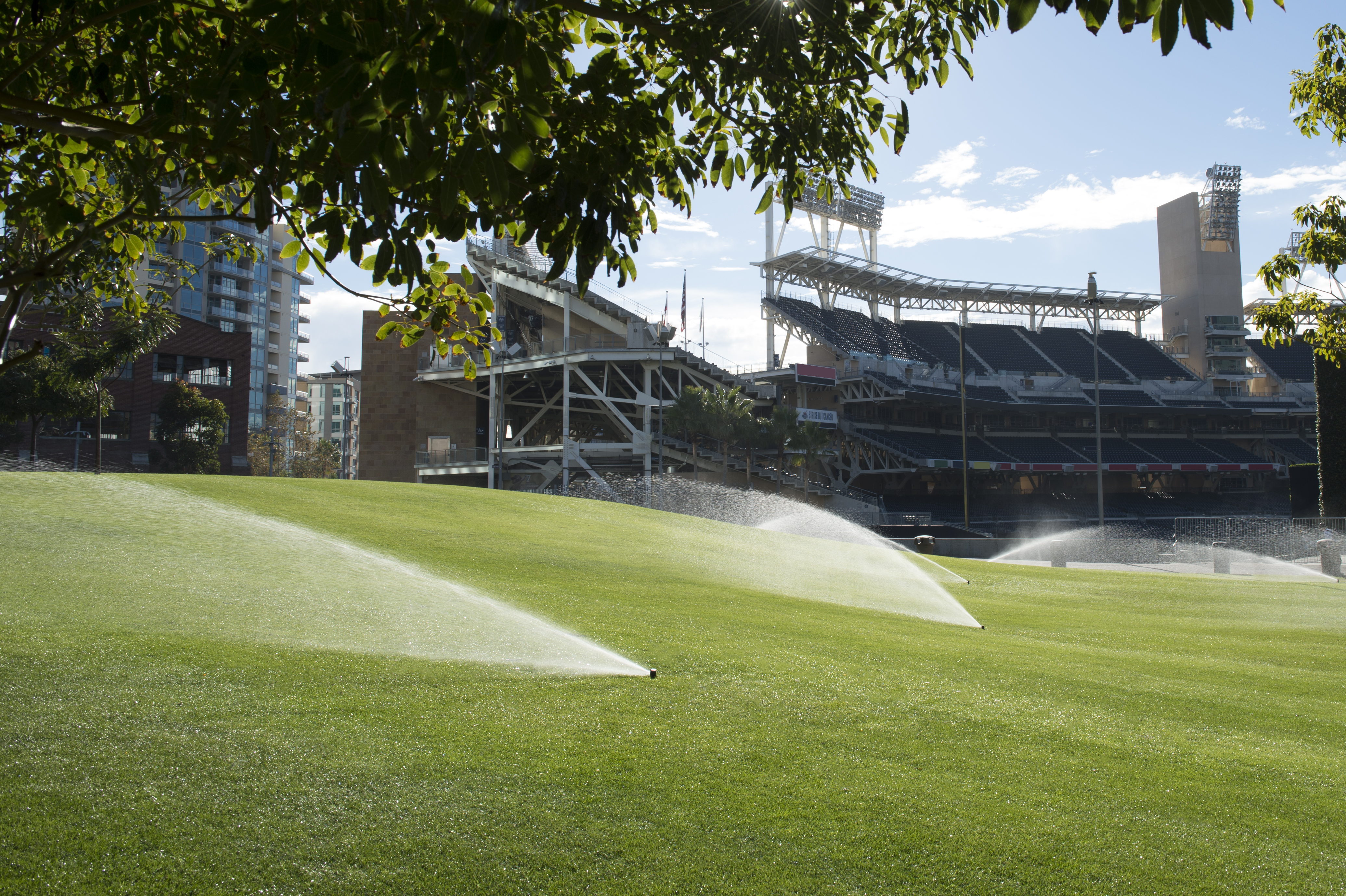 أغطية أرجوانية تشير إلى مكان استخدام مياه الري غير الصالحة للشرب.