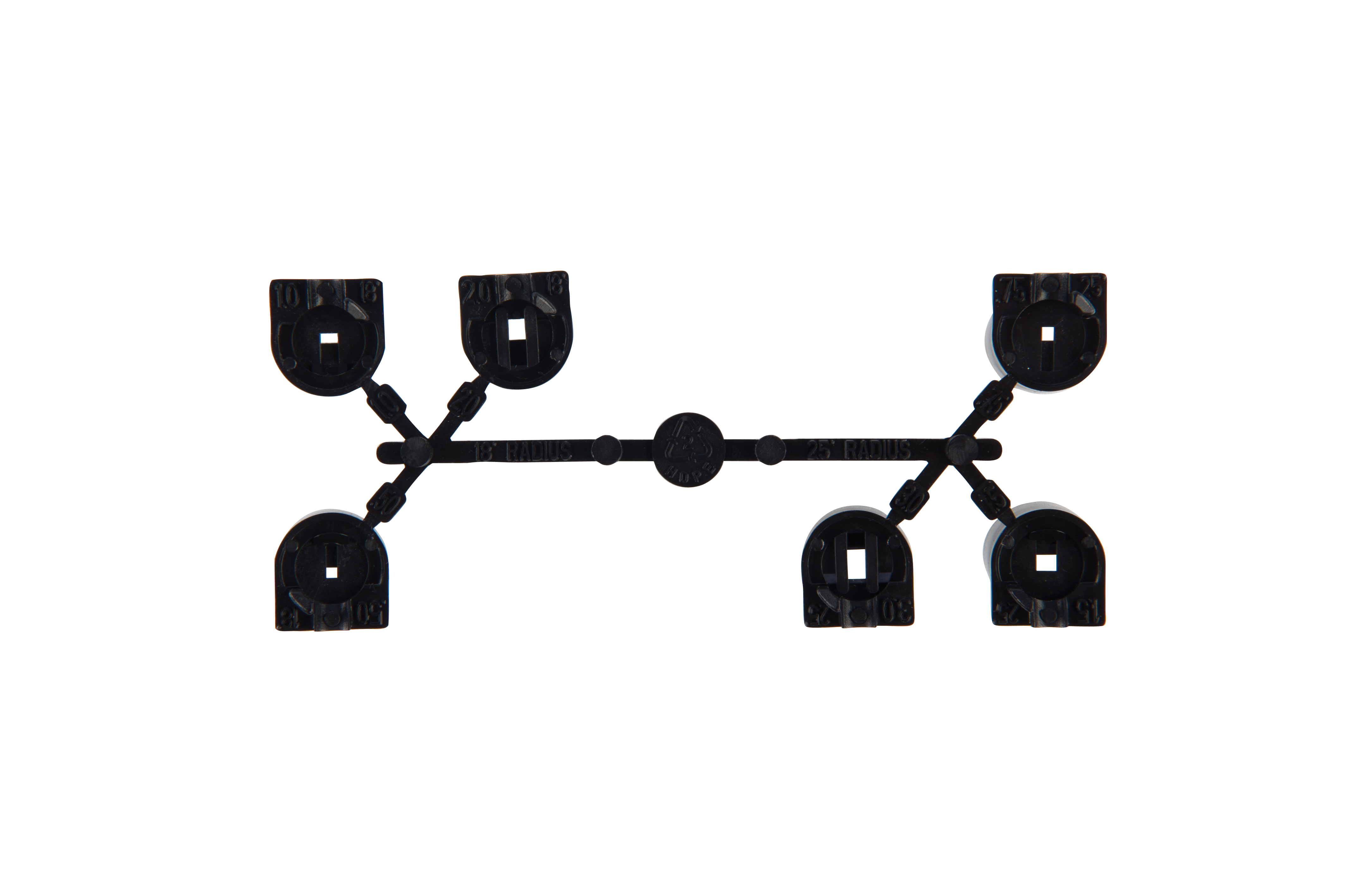 - حوامل النوزلات: 1.5 إلى 8.0 زرقاء، 2.0 إلى 4.5 رمادية بزاوية منخفضة، 0.50 إلى 3.0 سوداء، 6.0 إلى 13.0 خضراء، MPR-25، MPR-30 ،MPR-35