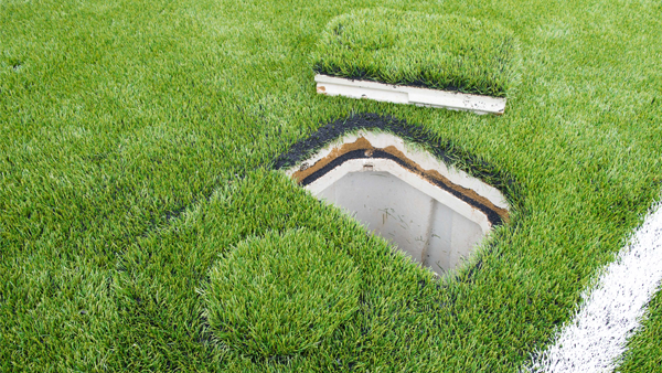 تم أتت المفاجئة المذهلة: بعد أن تمت الموافقة على التصميم كان علينا أن نختبر ضخ البئر ( الذي كان أساسيا بجانب 3G ) وأثبت هذا مشكلة بالنسبة لدوامات البئر. وهذا يعني إننا لا يمكننا ضخ الماء من البئر، لذلك ترتب علينا تفصيل خزان أسفل الملعب وتثبيت مضخة و عدتها.