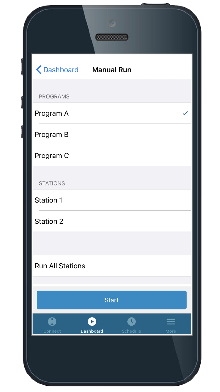 调节 案例研究 图表 教育 常见问题 安装详情 安装程序 更换指南 故障排除 手动操作将允许您在不更改任何自动设置的情况下打开以下内容。 现有程序(A、B 或 C)- 这允许您打开已设置运行时间和自动编程的站点的程序。 单站 - 这将允许您在 1 秒到 12 小时内打开任何单个区域。 所有站点 - 这将允许您在选定的运行时间内依次开启所有站点。 在指示板屏幕中,点击底部的运行 ,将显示以下屏幕。 还需要帮助吗?我们随时为您提供服务。 告诉我们您需要什么支持,我们将为您找到最佳解决方案。 联系客服 上一篇文章 Cycle & Soak 下一篇文章 Copy/Paste Scheduling
