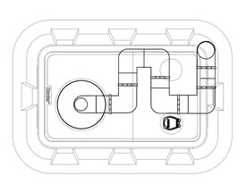 Die exklusive, 76 mm dicke, vierteilige Polymerbetonabdeckung verfügt an einer Seite über ein gegossenes Loch an idealer Stelle für den STG-1600B Getrieberegner. Dieses Design hält den Getrieberegner in perfekter Lage innerhalb des Lochs, während das Gehäuse von der freiliegenden Gegenseite hinterfüllt wird. Schnellkupplungen sind ein Muss für alle Kunstbeläge. Der gegossene Schnellkupplungsanschluss mit Deckel auf der gegenüber liegenden Seite macht separate Schnellkupplungsgehäuse um das Spielfeld herum überflüssig. Ein gegossener Anschluss mit Deckel für die automatische Ein-Aus-Auswahl des ST-Ventils sorgt für zusätzliche Flexibilität.