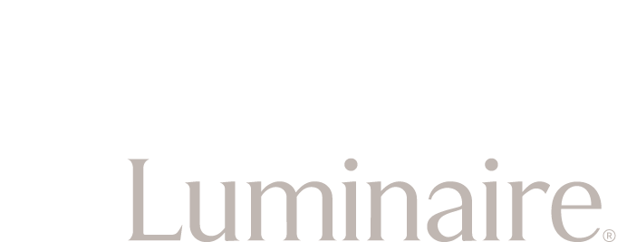 Use the black FX Luminaire logo against a solid white or light-colored background.