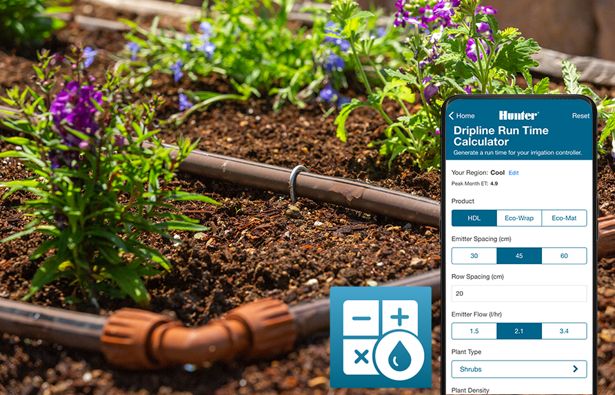 Quickly determine flow and application rate, calculate total dripline and emitters needed per zone, and get customised product recommendations for your project — all in just a few clicks.