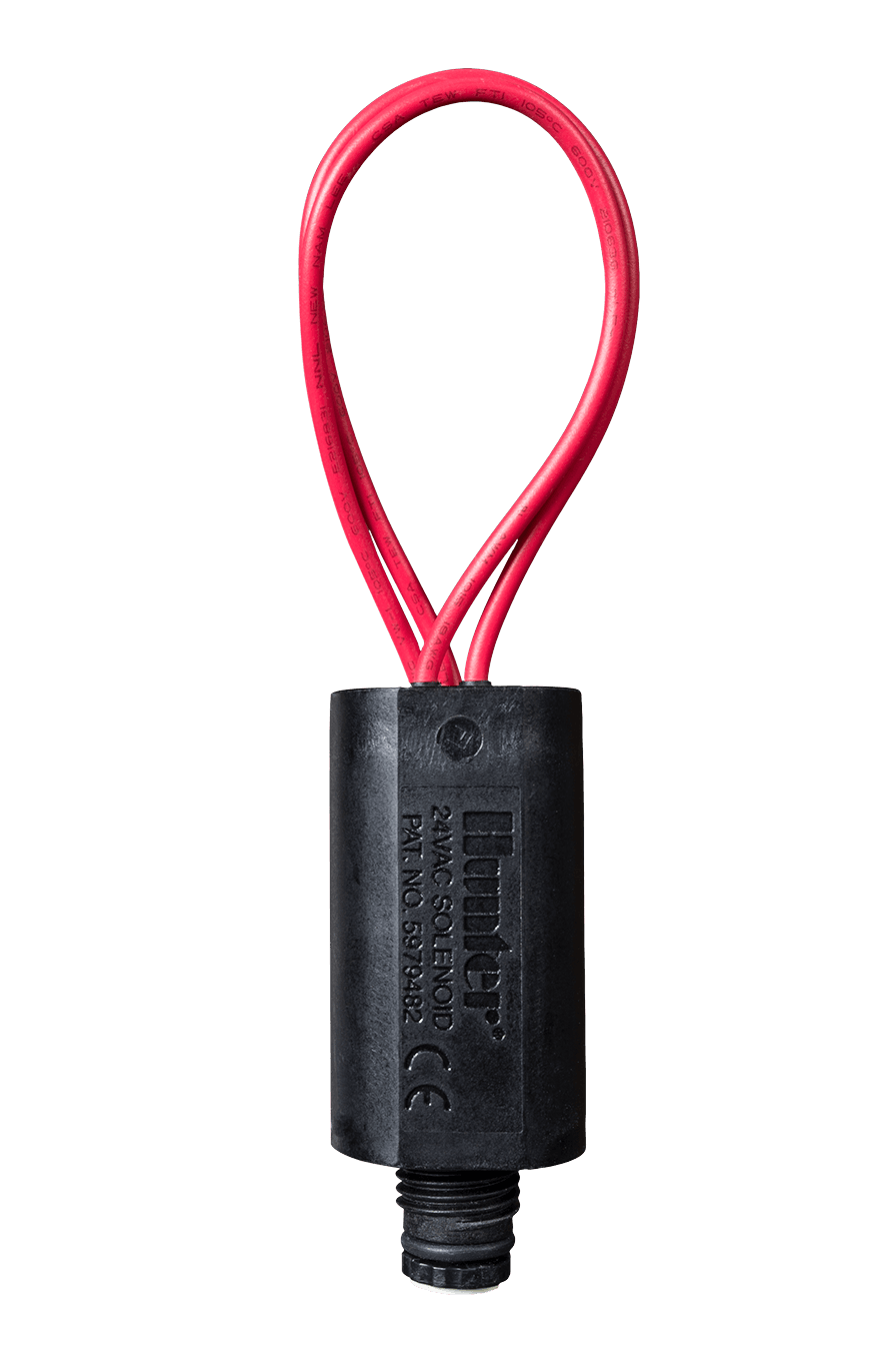 For maximum protection against water intrusion, the 24 V Hunter AC Solenoid features an encapsulated design that completely seals the electronic components in heavy-duty plastic. The captured plunger simplifies servicing by reducing the risk of lost internal parts.