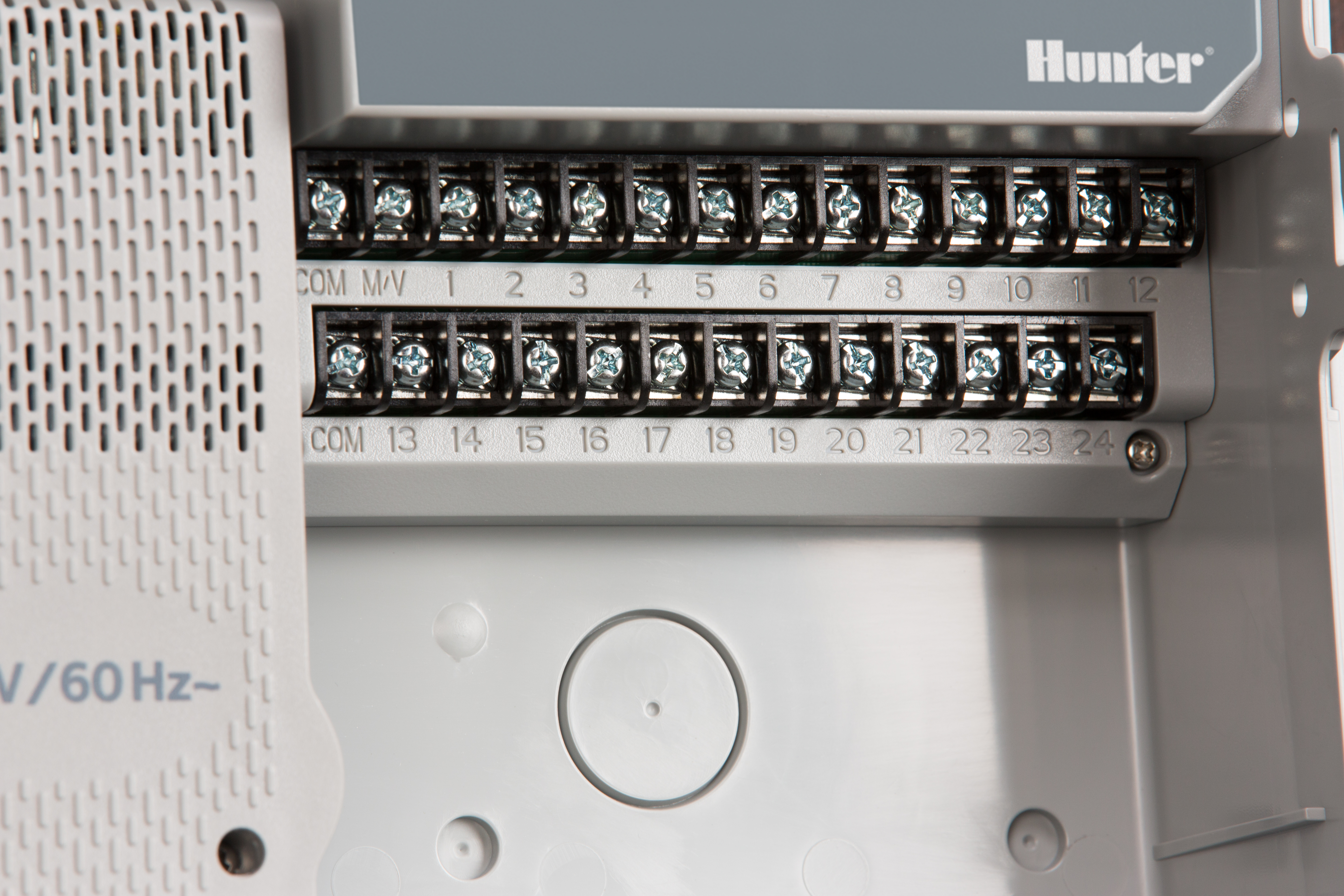 Two general purpose sensor ports can be used for many different functions. Sensor ports work with the Hunter HC Flow Meters, the Hunter Clik Sensor range, and standard rain and soil sensors to stop irrigation. The sensor ports can also start an irrigation cycle. This allows you to create custom starts based on sensor readings.