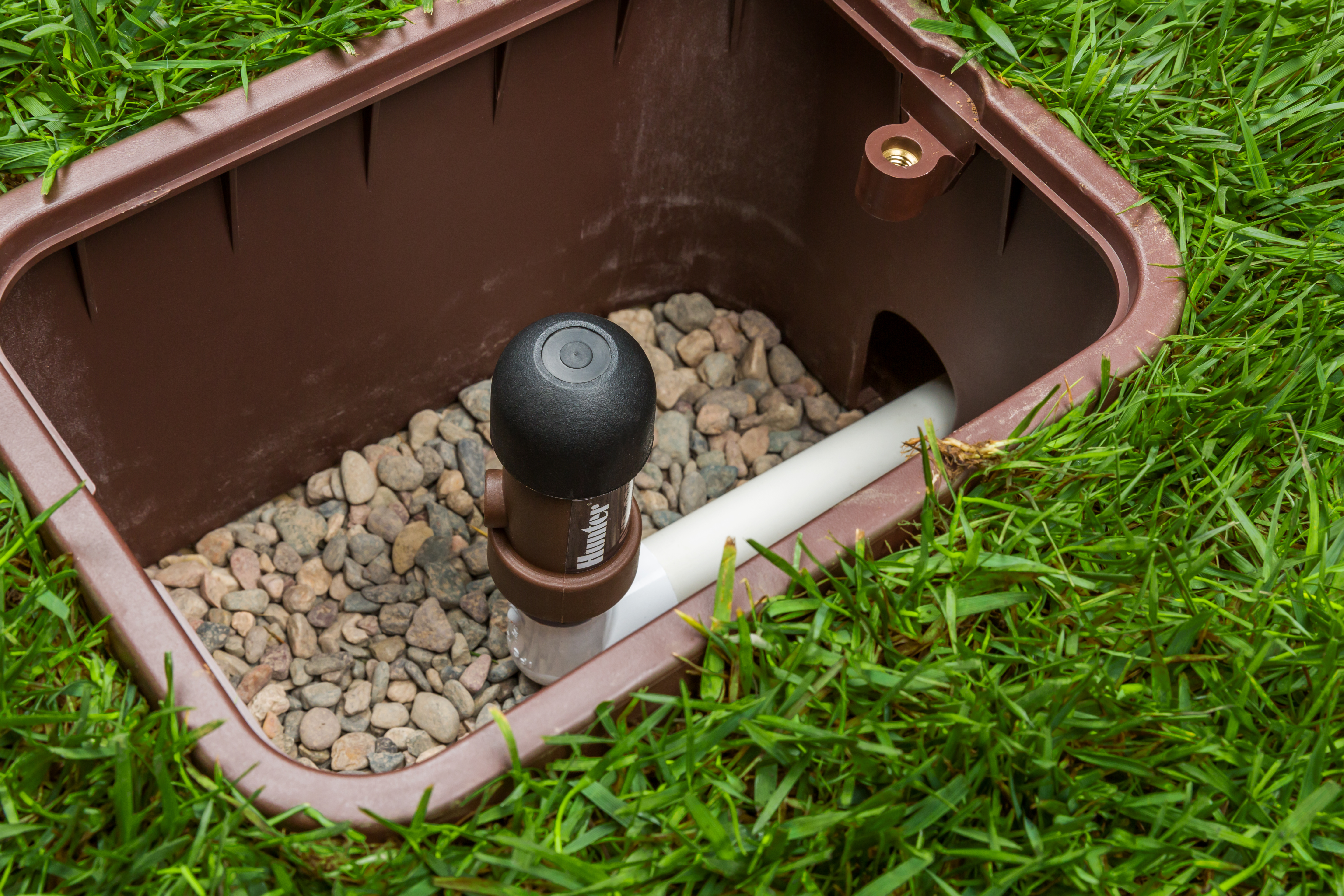 This sturdy box is just right size to provide protection and easy access to essential irrigation components.