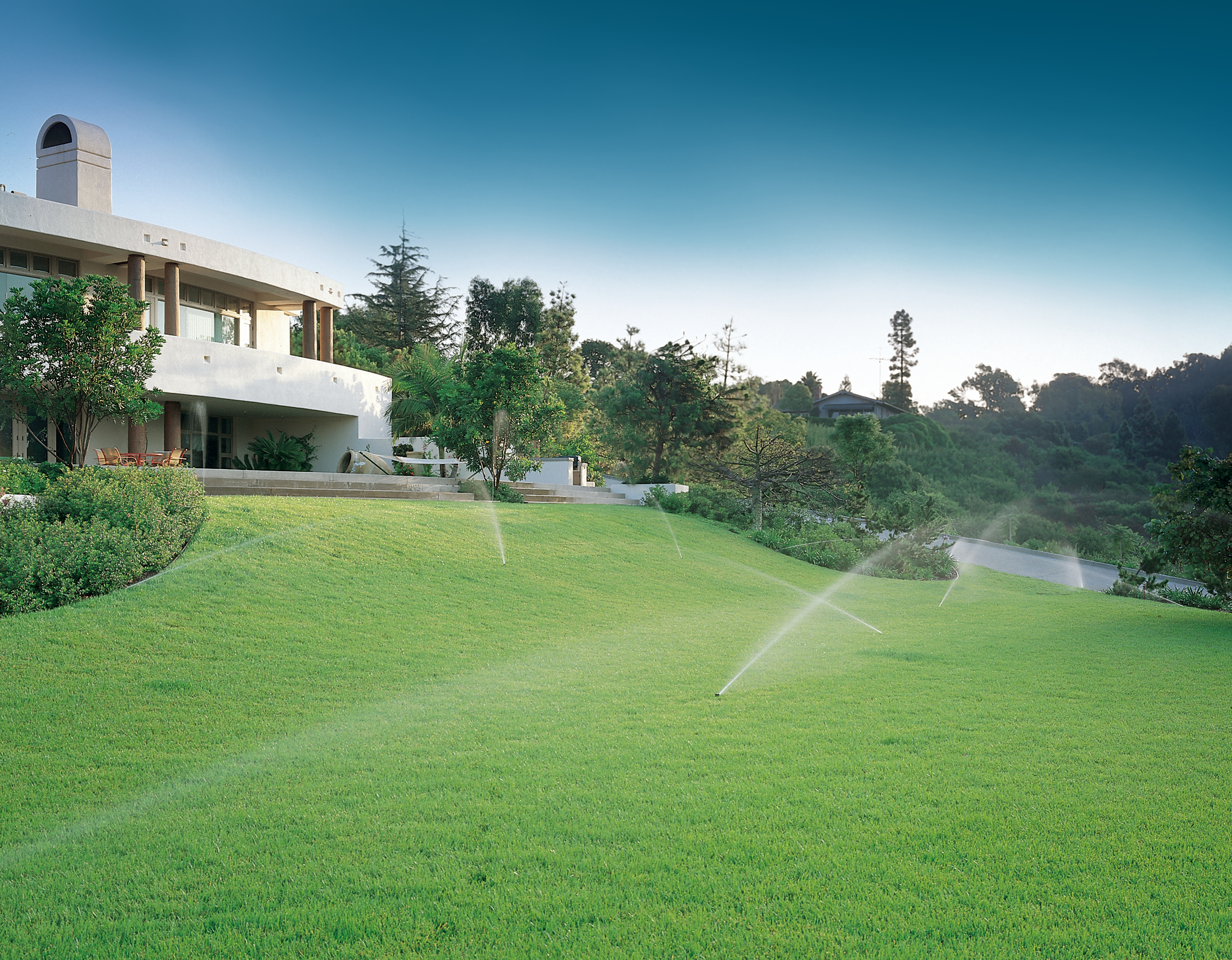 - Pop-up sprinkler rotates silently then dissappears when the job is done