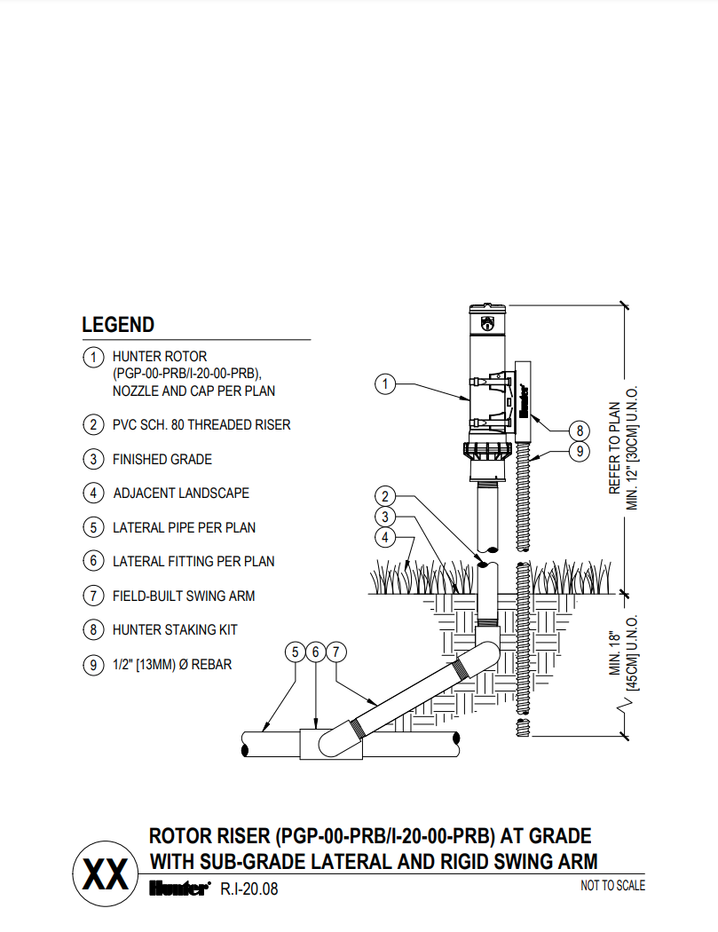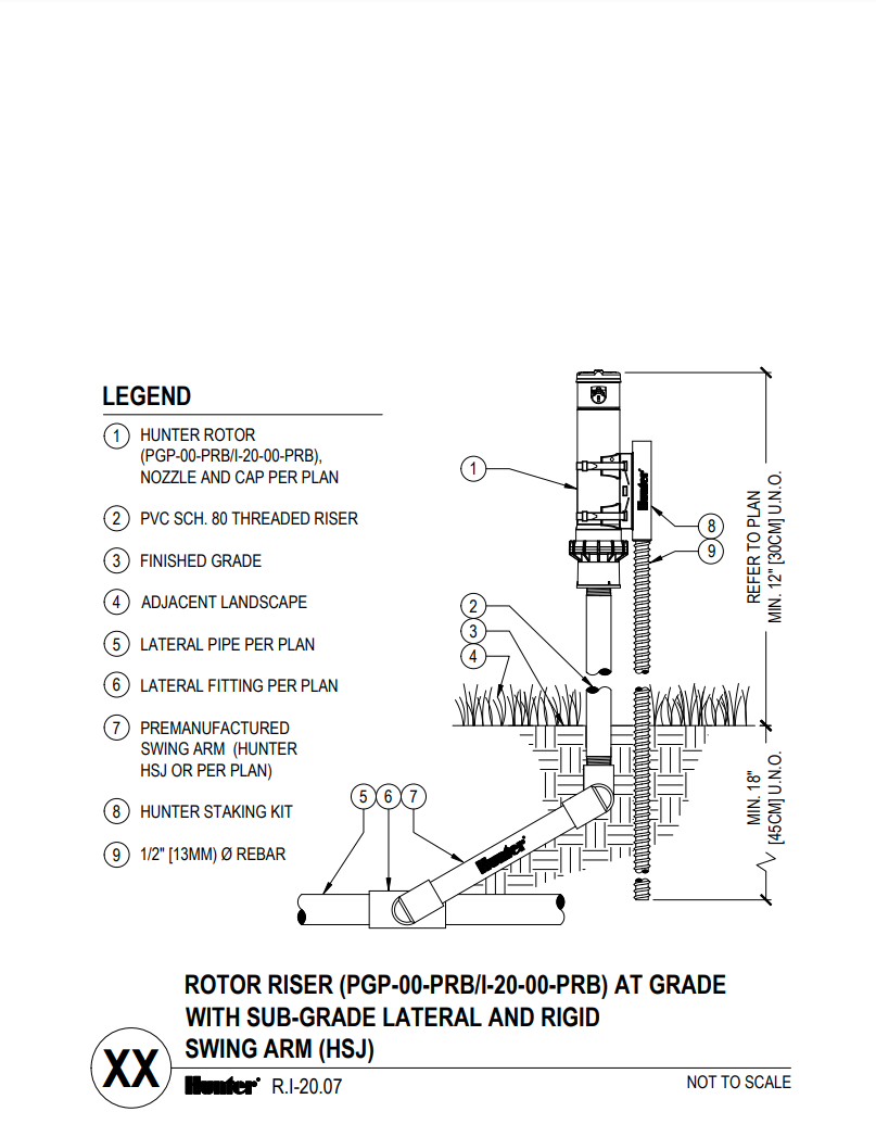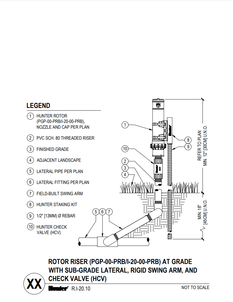 | I-20-06-R-PRB | I-20 Rotor, 15 cm, adjustable from 50° to 360°, ¾" inlet, check valve, reclaimed ID, pressure-regulated body | + |