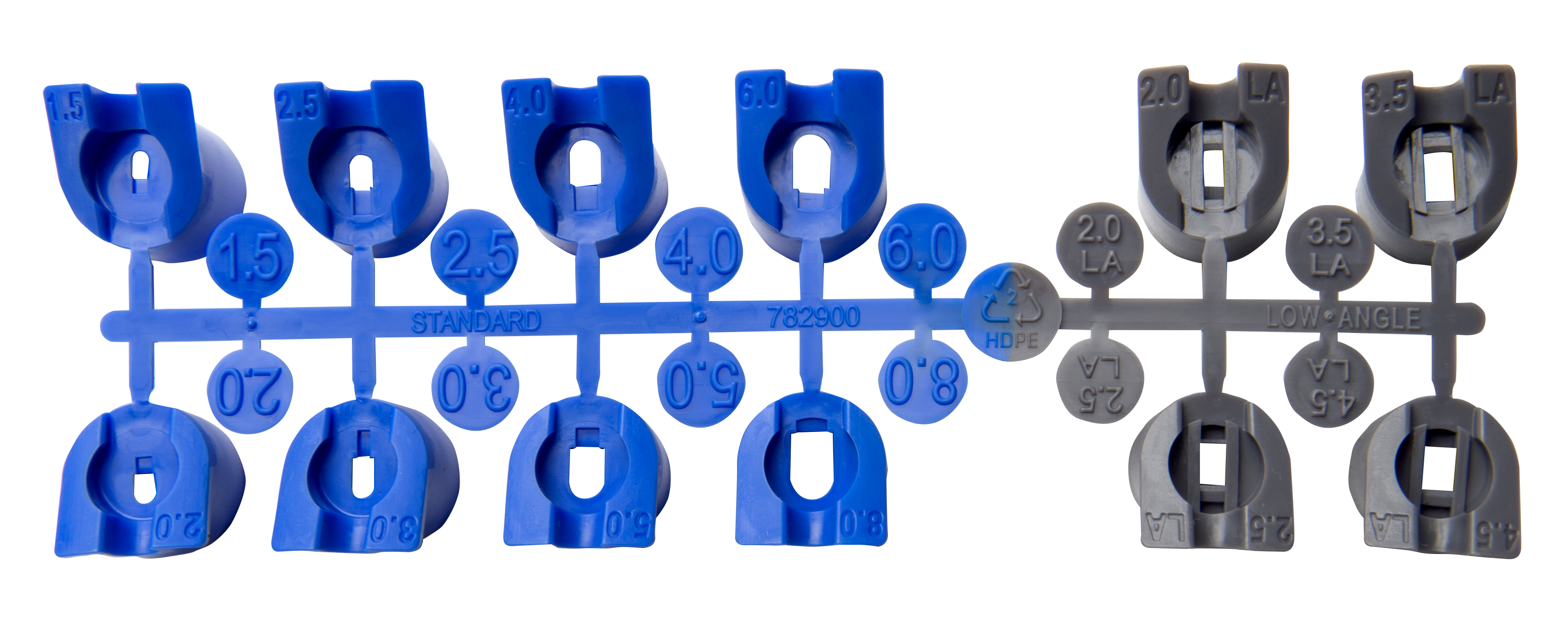- Nozzle racks: 1.5 to 8.0 blue, 2.0 to 4.5 low-angle grey, 0.50 to 3.0 black, MPR-25, MPR-30, MPR-35