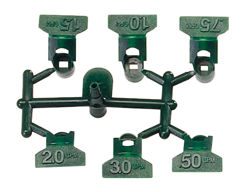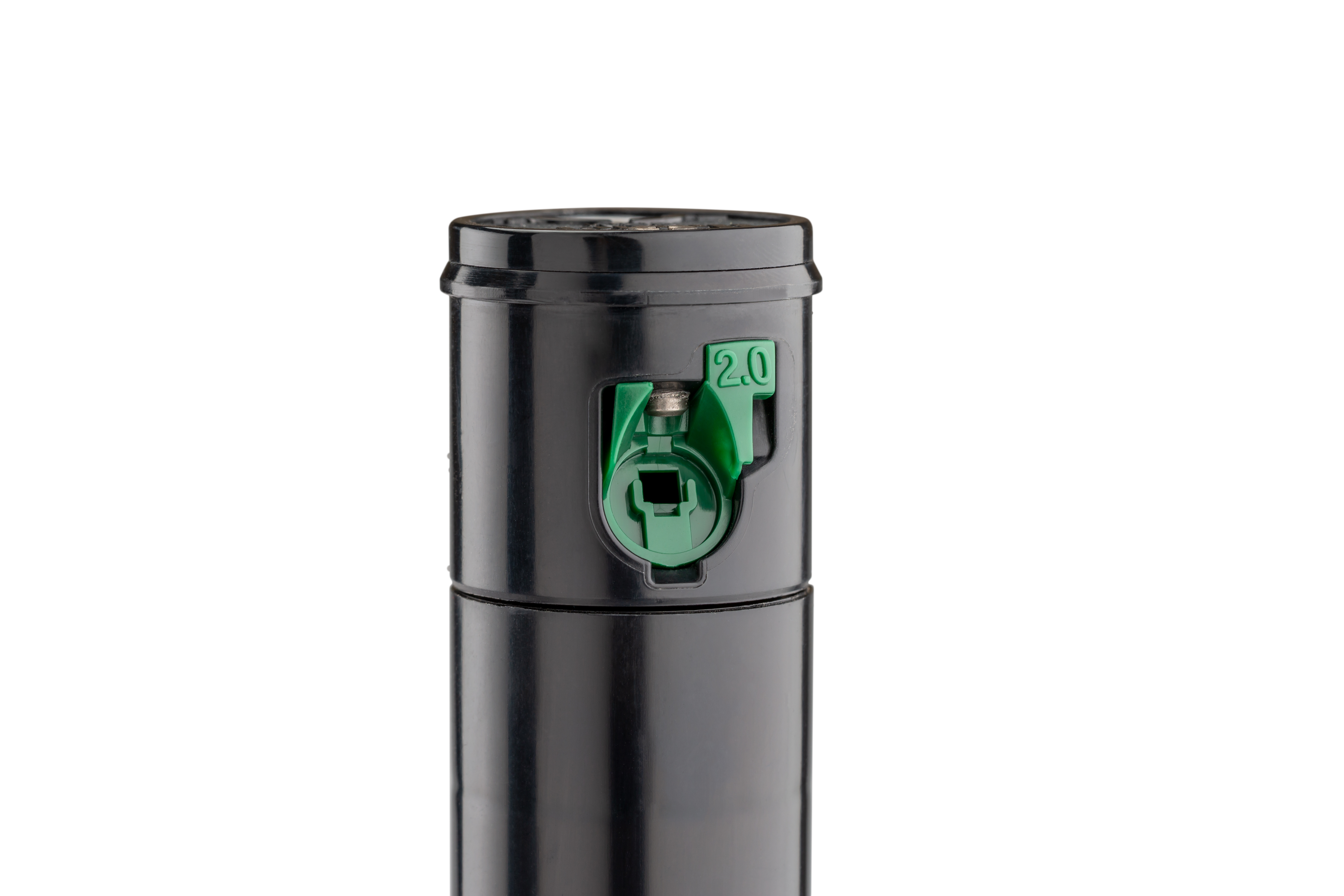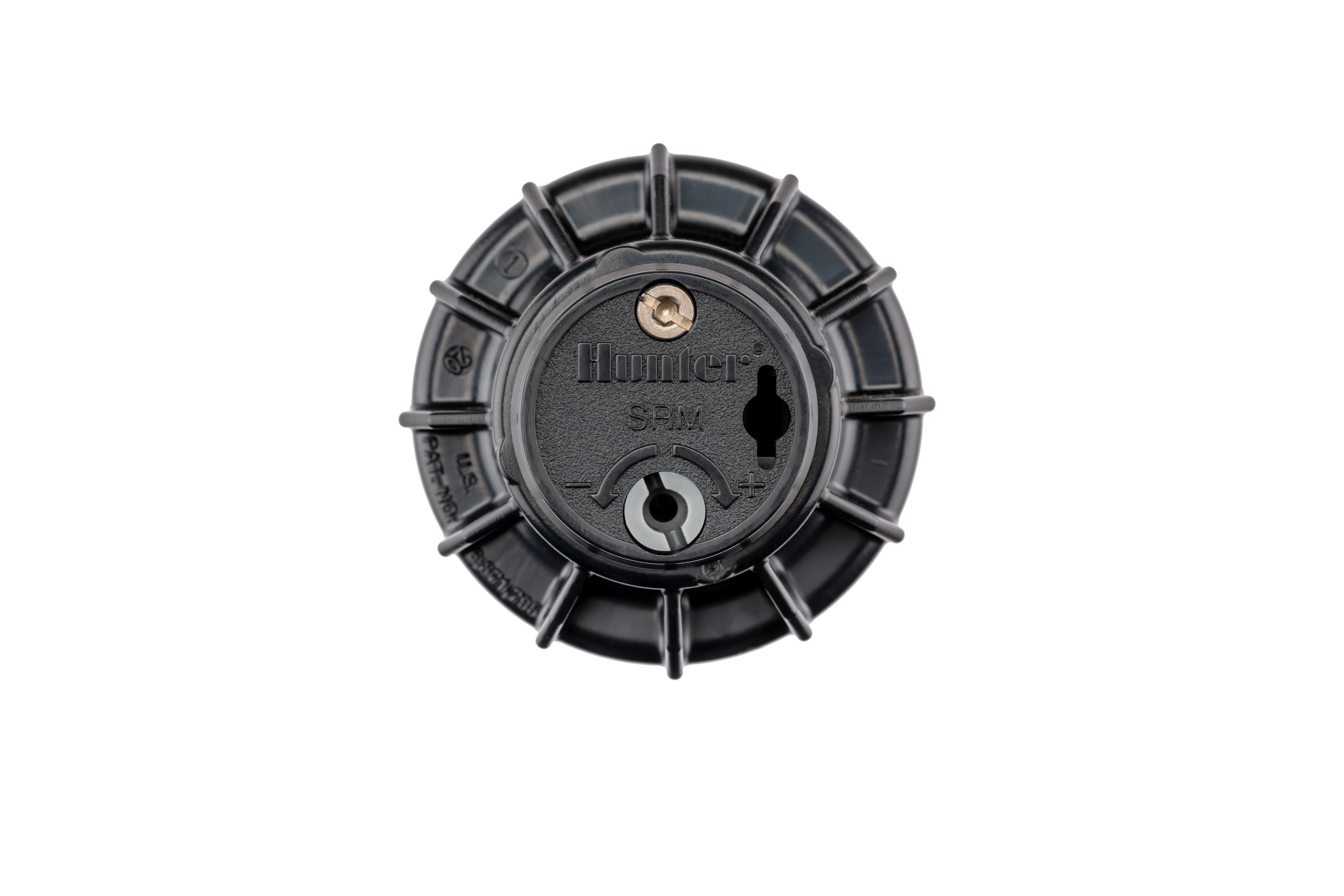 The SRM is Hunter’s shortest-range rotor, and was designed to offer a convenient and efficient alternative to spray heads. It is capable of working in tandem with larger rotors to combine big and small areas in a single zone. Utilizing the SRM where appropriate results in fewer sprinklers performing more efficient work at a more economical price. The SRM features a rack of six water-efficient nozzles—all of which can be easily identified by their flow rates and installed and changed quickly and easily. This versatile rotor also includes a radius adjustment feature that fine-tunes the spray to keep water off driveways, walks, and other non-landscaped surfaces.