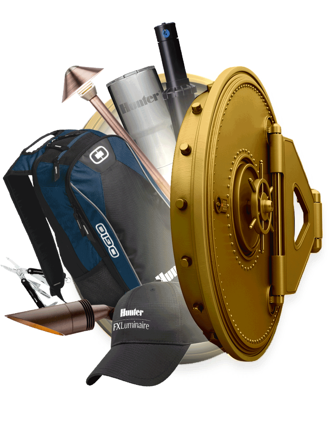 Visit vault.hunterindustries.com each week to answer Hunter and FX Luminaire trivia questions. You will earn coins for each correct answer that can be exchanged for great prizes. Be on the lookout for monthly challenges and bonus coin opportunities.