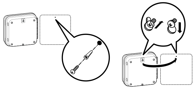 - Use the hole at the top of the controller as a reference and secure a 1" (25 mm) screw into the wall. Note: Install screw anchors when attaching the controller to drywall or masonry wall.