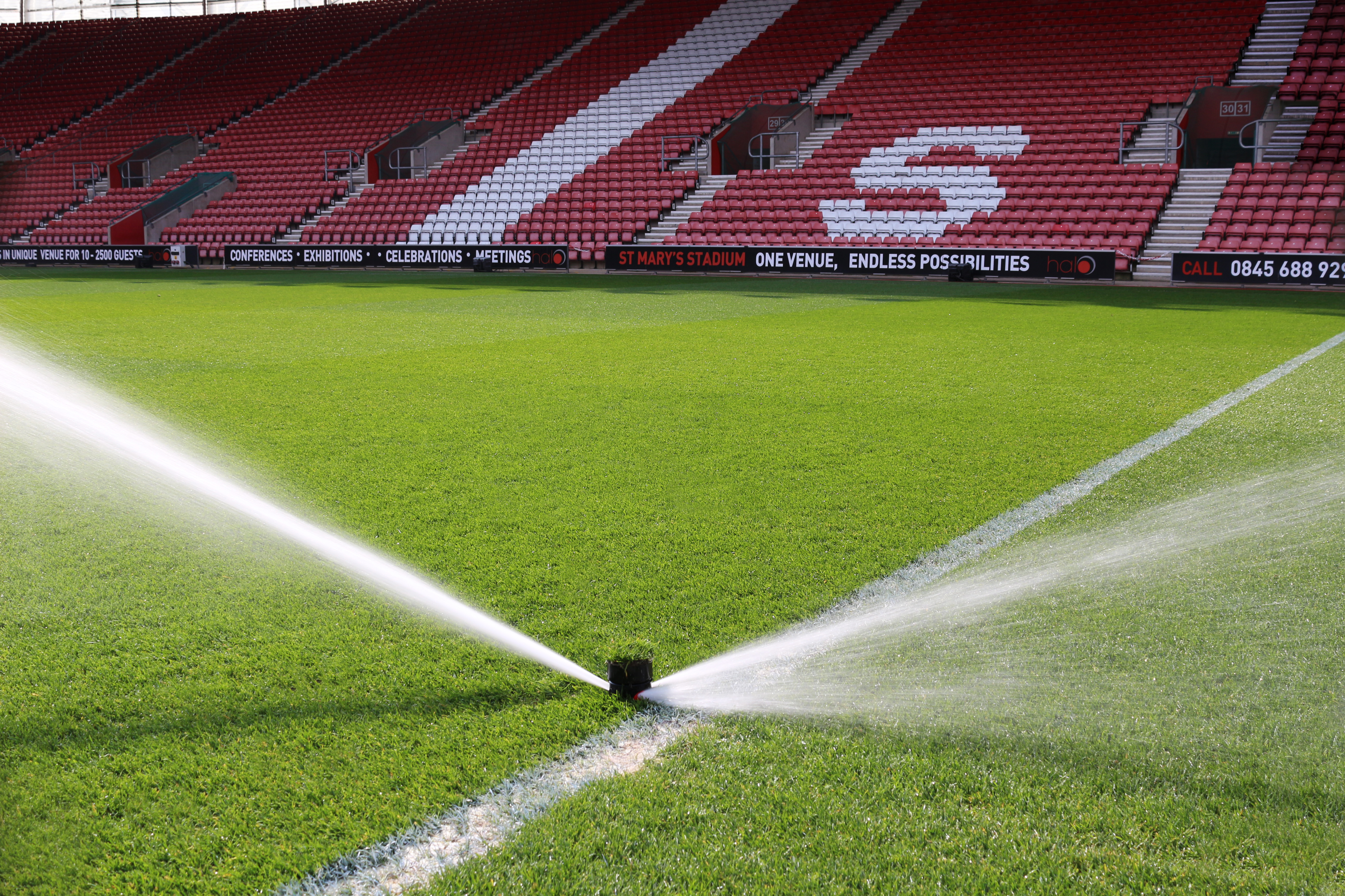 To realize cost and time savings, installation at St. Mary's would be undertaken in conjunction with the redevelopment and extension of the Staplewood Training Center. To maintain the high standards applied at the stadium, the conventional soil was dug up and the pitch was reconstructed out of fibre sand. The system hydraulics were increased to provide greater flow to leverage G995E and I-90-36V with turf cups to reduce the nightly watering window. To maximize efficiency, control was provided by Hunter Surveyor, which offers flow management and mobile phone connectivity.