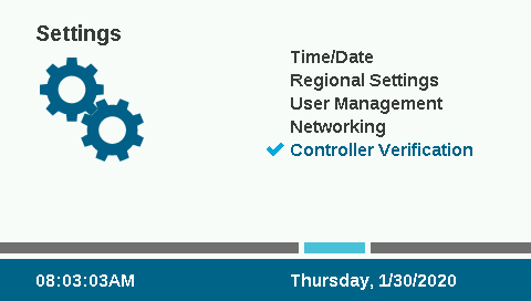 Go to the controller menu for Settings, and select CONTROLLER VERIFICATION. You must select the Controller Verification screen before pressing NEXT, or the code will not be sent (the software must detect the correct screen in the display before sending the code). Enter the code number that appears on the Controller Verification screen into the software setup screen.