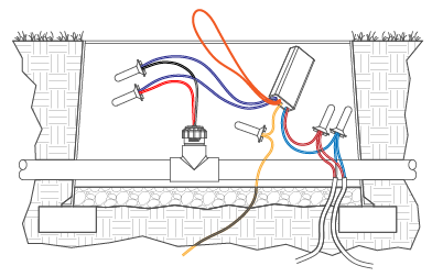 5. Connect decoder RED and BLUE wires to the red and blue path wires. Seal with included waterproof connectors.