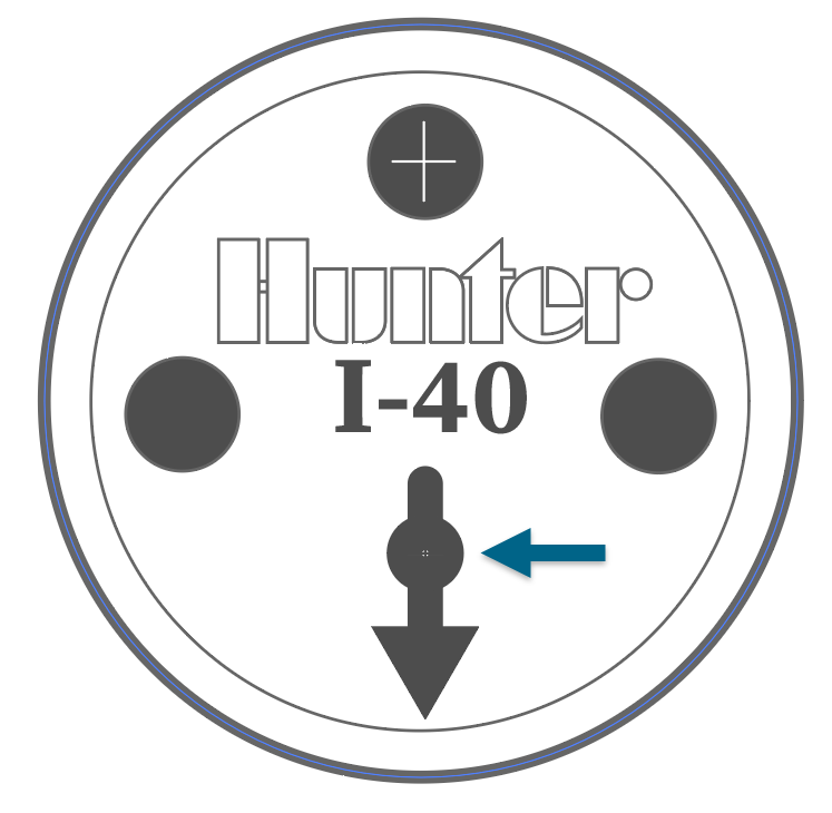 Using the Hunter wrench, loosen the nozzle-retainer/range-adjustment screw. If a nozzle is already installed in the sprinkler, it may now be removed by briefly turning on the water or removing it with pliers.