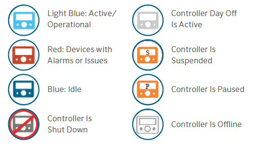 • Status Indicators: Real-time indicators showing the operational status of different zones and controllers.