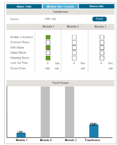 • Displays real-time electrical current measurements in milliamperes (mA) affecting your irrigation system