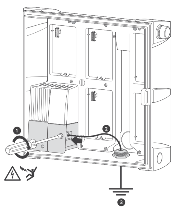 - Minimum 10 AWG (5mm2) wire to earth ground hardware.