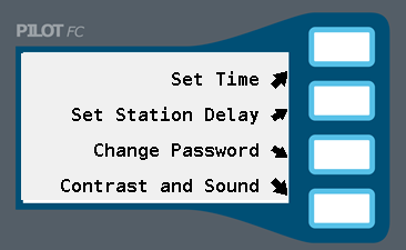 Controller Settings The controller settings section is where users can edit the current date and time, station delays, contrast, and sound or create a password to edit anything in the controller.