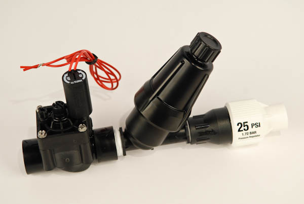 Drip zones need regulation because the working pressure of a drip zone is lower than any other type of system. Hunter offers two options for pressure regulation - a 25 psi(1.7 bars/170 kPa) and a 40 psi(2.8 bars/280 kPa) version. The 25 psi version is suited for point source systems using individual emitters, and types of systems that are not pressure compensating, or systems using small supply tubing. The 40 psi system is aimed at pressure compensating systems like Hunter's PLD inline emitter tubing. PLD emitters compensate for pressure delivered from 15 to 50 psi(1.03-3.45 bars)(103.43 to 344.75 kPa). The 40 psi regulator reduces the pressure to something the emitters can handle, ensuring the accurate amount of water supplied and long term performance..