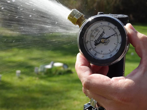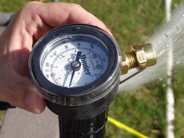 | The easiest of the rotor pressure gauges to use, the Rotor Pitot Gauge (P/N 280100) has a tube that is placed directly in front of the primary nozzle stream for an accurate working pressure reading. This gauge will work on all Hunter rotor sprinklers, as well as almost any other manufacturer's rotors. |
