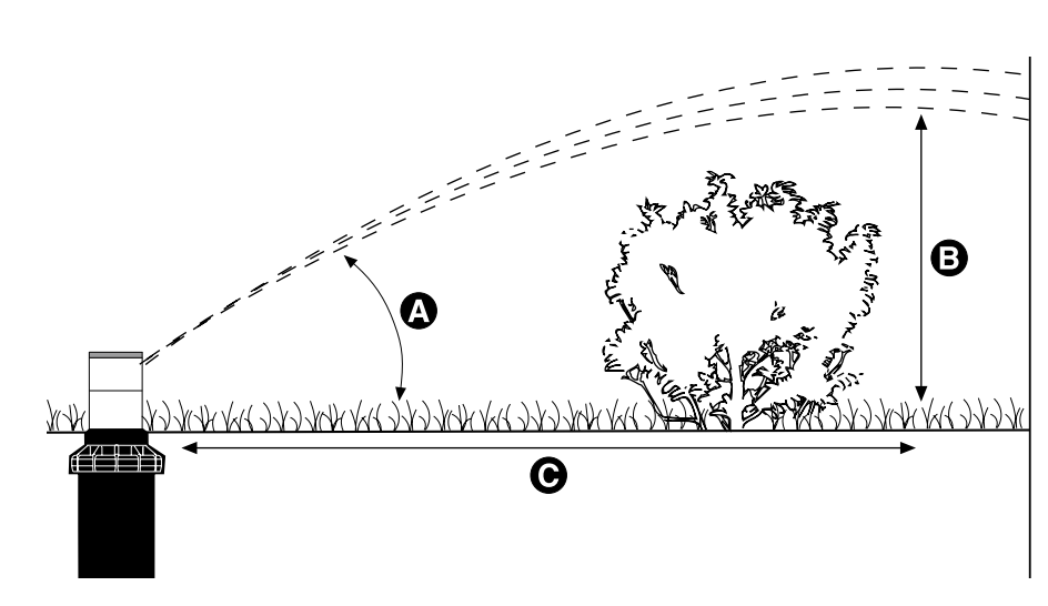 These rotor nozzle trajectory charts are designed to help determine how close a sprinkler can be placed to an object such as a fence or hedge without obstructing the spray pattern. All information shown is at optimum operating pressures.
