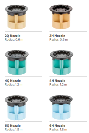 | 6H | Short-Radius Micro Spray Nozzle, 1.8 m radius, 180°, fixed arc |