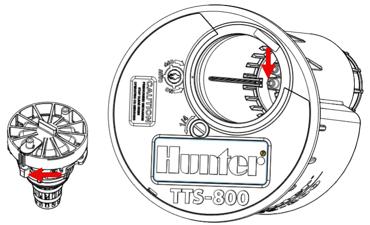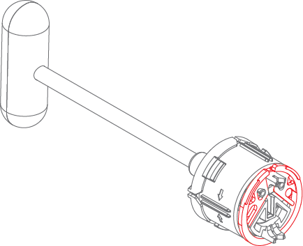 - Load the inlet valve on the tool by pressing the ribs on the top of the inlet valve into the slots on the tool (Note: make sure to align the communication port and ribs on the inlet valve with the ribs shown with the arrows on the side of the tool).