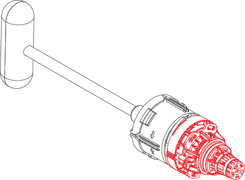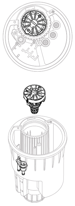 - Once lowered press the inlet valve into position. The communication port from the inlet valve should be pressed into the metal communication port at the bottom of the inside of the rotor body. If the inlet valve slit is lined up with the rib this can be pressed in with gentle force to make the connection with both communication ports.