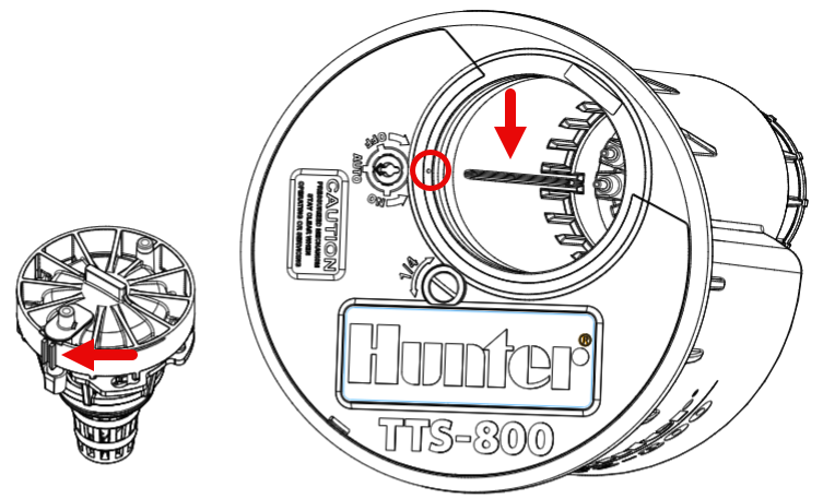 Line up the slit from the inlet valve and the rib on the inside of the rotor body. There is a dimple on the top of the rotor to identify the specific rib needed for alignment.