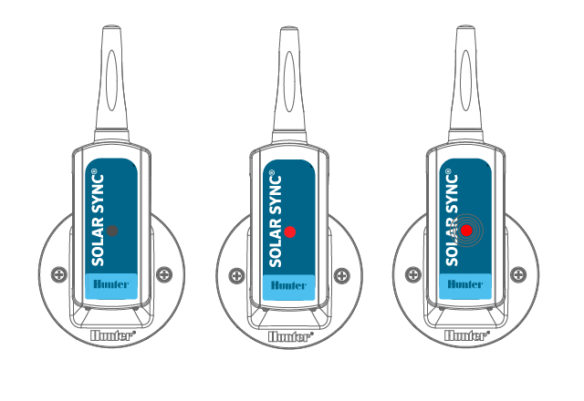 • Solid red: When power restored to the controller, the red LED in the center of the wireless receiver will turn on and stay solid for 10 seconds, indicating that it is searching for a signal from a wireless sensor.
