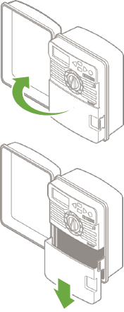 Before securing the controller to the wall, you must first remove the lower wiring compartment door. The door can easily be removed by following the simple steps below: