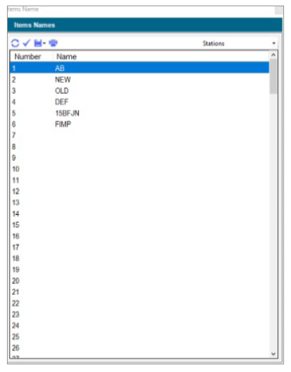 Esta pantalla se utiliza para nombrar estaciones individuales dentro de un programador. Haga clic en un programador existente y aparecerá el menú del programador. De esa lista, seleccione Nombres de elementos para abrir esta pantalla e introduzca nombres para cada estación. Pulse el botón Guardar para enviarlos al programador.