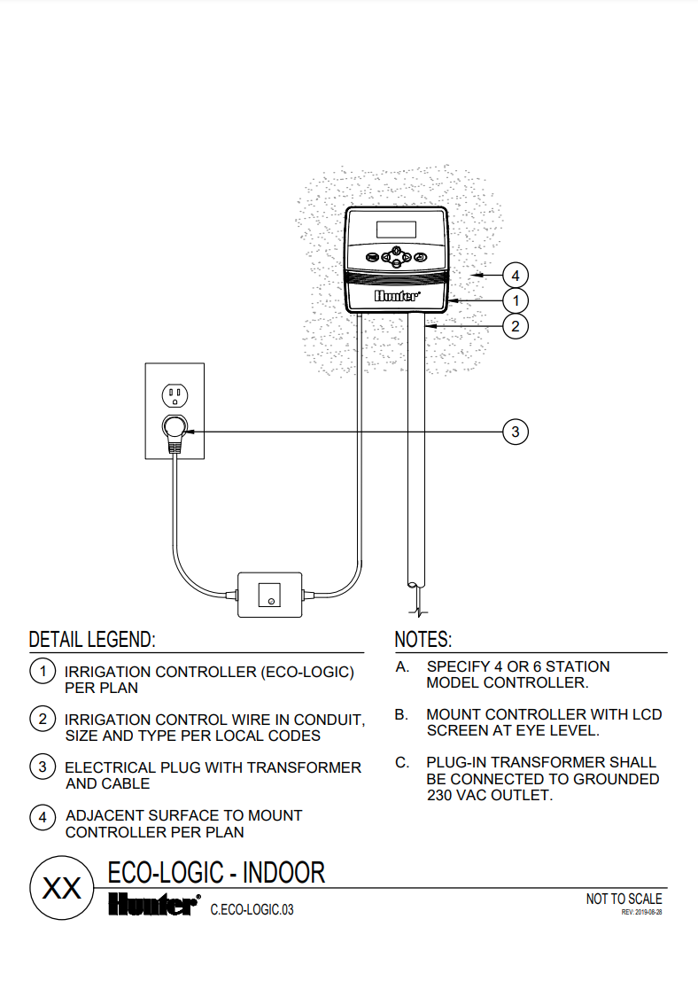 Le programmateur Eco-Logic est doté de fonctionnalités exceptionnelles, telles que la programmation sur simple pression d'un bouton, la fonction Quick Check Hunter, deux programmes indépendants avec quatre heures de départ chacun, un calendrier de 365 jours, un réglage saisonnier (de 10 à 150 %), une compatibilité avec les sondes météorologiques et une mémoire non volatile. L'Eco-Logic est disponible en modèles à 4 ou 6 stations, chacun possédant des fonctions permettant d'optimiser l'efficacité du système. Pour la simplicité, la fiabilité et les économies, rien n'égale le programmateur Eco-Logic de Hunter.