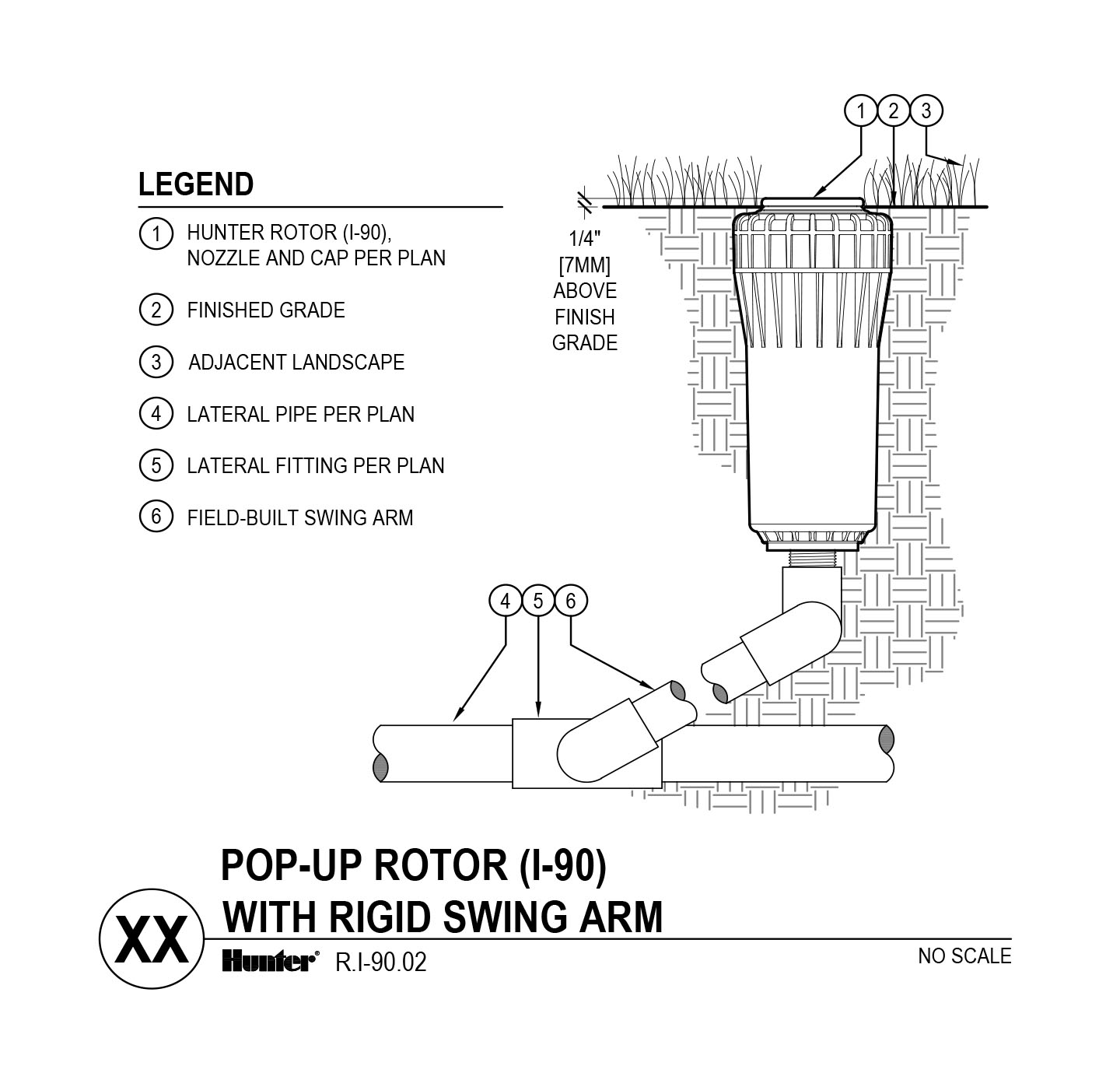 | I-90-3RV-B | Arroseur I-90, 8 cm, cercle complet, entrée BSP de 40 mm (1½"), clapet anti-vidange, buses opposées, identification des eaux usées, huit buses incluses (25-73) | + |