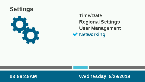 Appuyez sur le bouton Menu principal et positionnez la molette sur le menu Paramètres. Appuyez sur la molette pour valider votre choix. Faites tourner la molette jusqu'à la section Mise en réseau et sélectionnez-la en appuyant sur la molette. L'écran Mise en réseau affichera des informations sur le module cellulaire, y compris le statut de la connexion et le numéro de série de l'appareil.