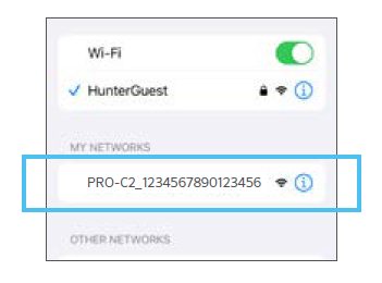 Open the Wi-Fi settings on a computer, smartphone, or tablet and select the PRO-C2 network. The network name
