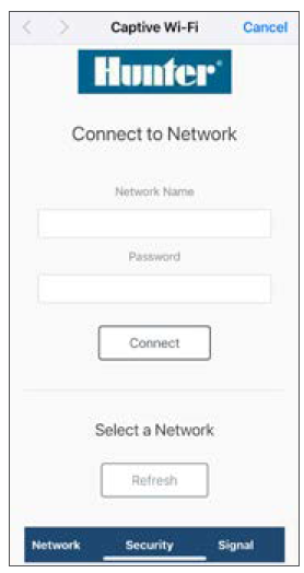 IMPORTANT : Assurez-vous que vous vous connectez à un réseau privé disposant d'une connectivité de 2,4 GHz. Si l'écran de connexion au réseau Hunter ne s'affiche pas automatiquement après l'étape 2, saisissez l'adresse IP suivante dans votre navigateur Internet : 192.168.7.7.