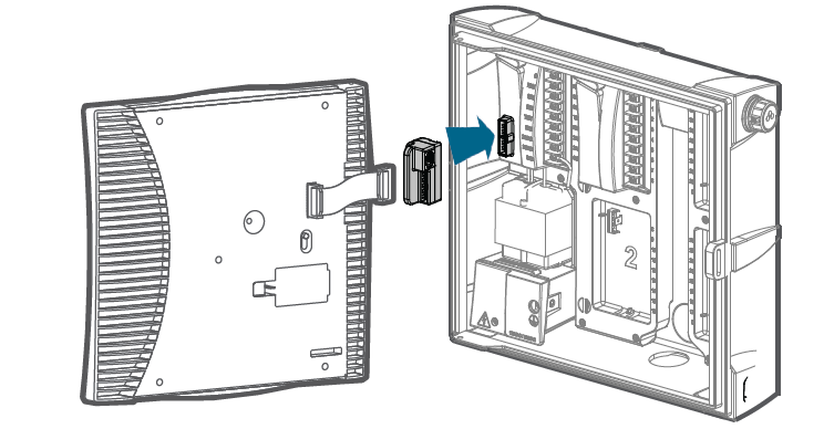 - Fixez le boîtier de l'antenne au programmateur au moyen de l'écrou et du support de fixation pour boîtiers en métal.