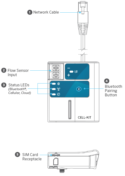 Le MODULE INTERNE est le composant principal du kit de module de communication cellulaire. Il est alimenté par le programmateur ICC2 hôte et installé à l'abri à l'intérieur du boîtier du programmateur. Le support de fixation magnétique permet de l'installer et de le retirer rapidement. Le module interne se connecte à une antenne cellulaire montée à l'extérieur via une connexion SMA. Il abrite également la carte SIM nécessaire à l'activation des données et comporte deux bornes à vis permettant de le relier à une sonde de débit.