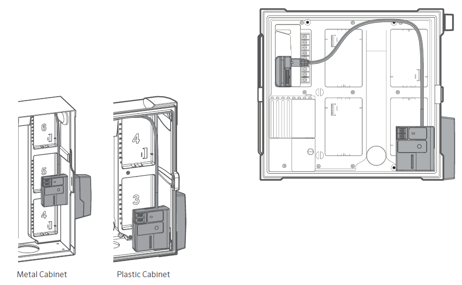 Le module de communication cellulaire comprend tout le matériel nécessaire pour installer le programmateur ICC2, que ce soit dans un boîtier en plastique, en métal ou sur socle.
