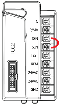 Les programmateurs ICC2 dont le code de date de fabrication est MAI 2024 ou plus récent comprennent de nouvelles entrées de sonde. Ces changements sont également signalés par un autocollant bleu au dos de la façade. Les bornes SEN-SEN des programmateurs ICC2 d’origine ont été remplacées par deux entrées de sonde dédiées :