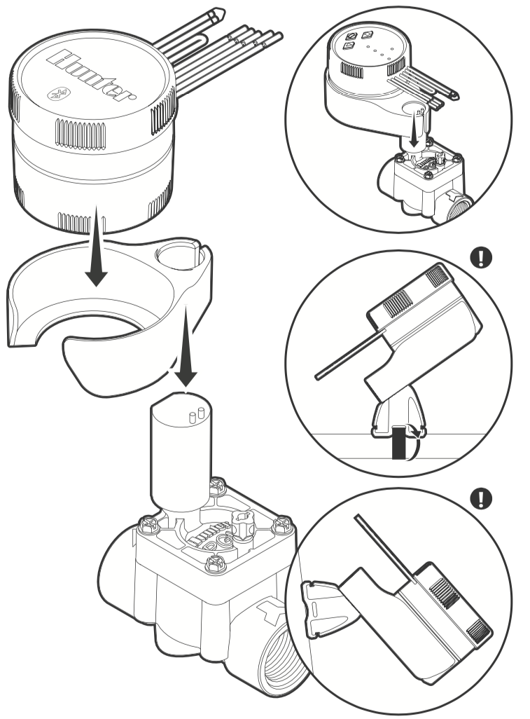 Il est facile de brancher le NODE-BT à n'importe quelle électrovanne Hunter à l'aide du support inclus. Un couvercle protecteur en caoutchouc empêche la poussière de s'accumuler sur la surface du programmateur