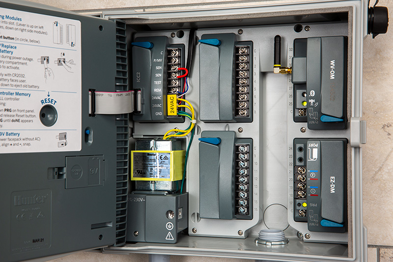 The ICC2 Controller offers control for three different types of output connections, up to 54 stations plus a master valve. It can also host conventional, two-wire, and wireless outputs to stations in the field, all in the same installation.