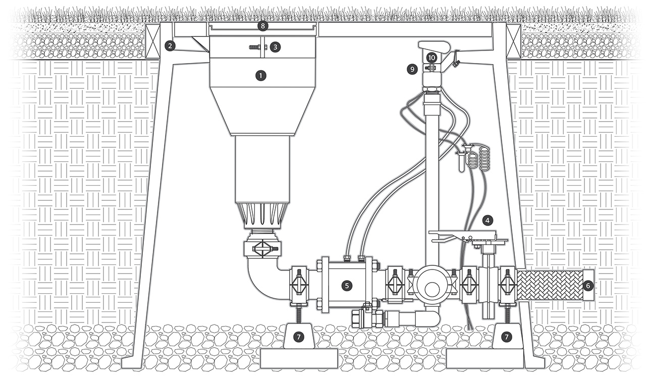 | 2 | ST-243636-B | 1 | Composite vault, precast hole for rotor and two quick-access ports for quick coupler and remote on-off-auto selector |