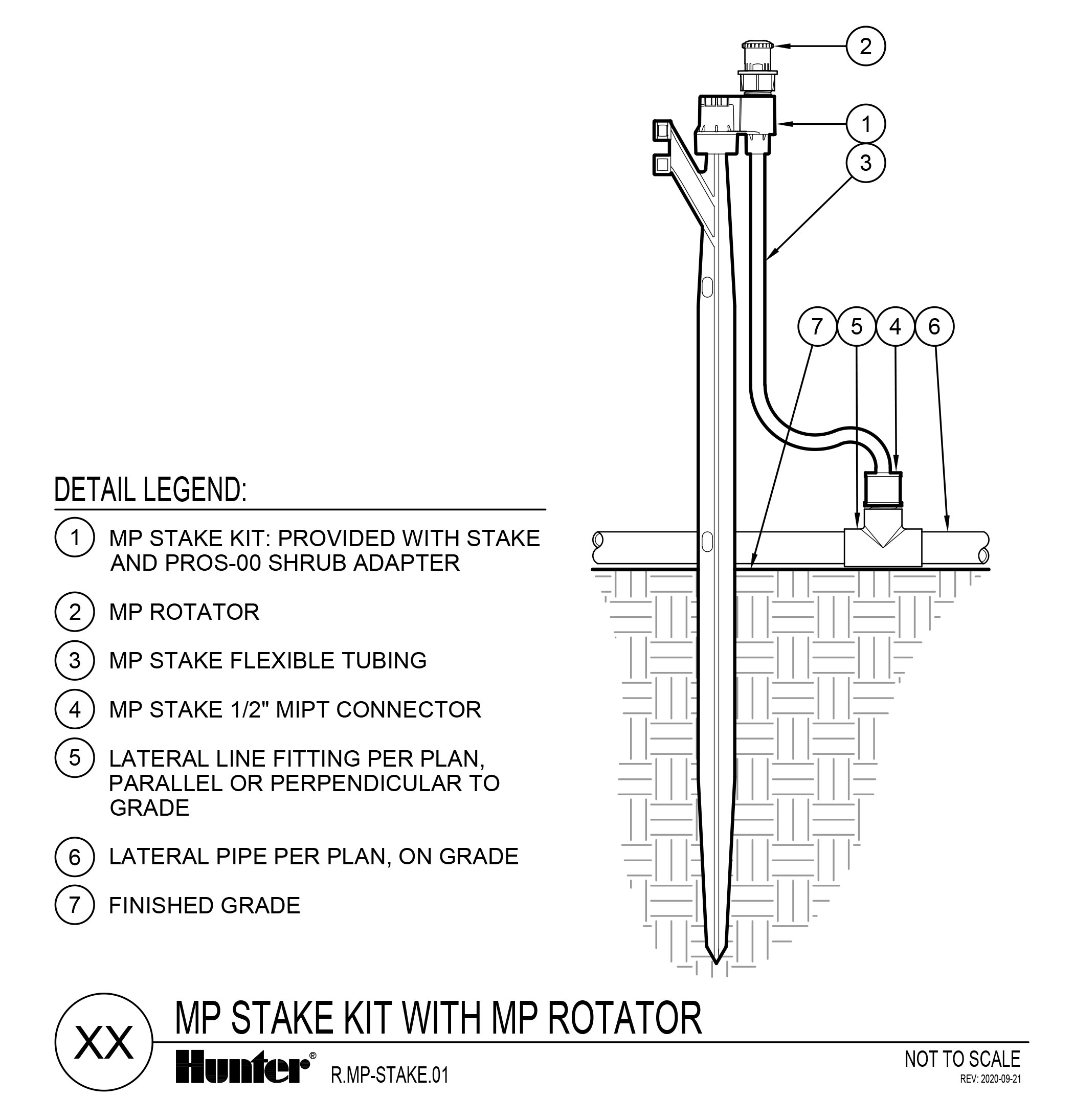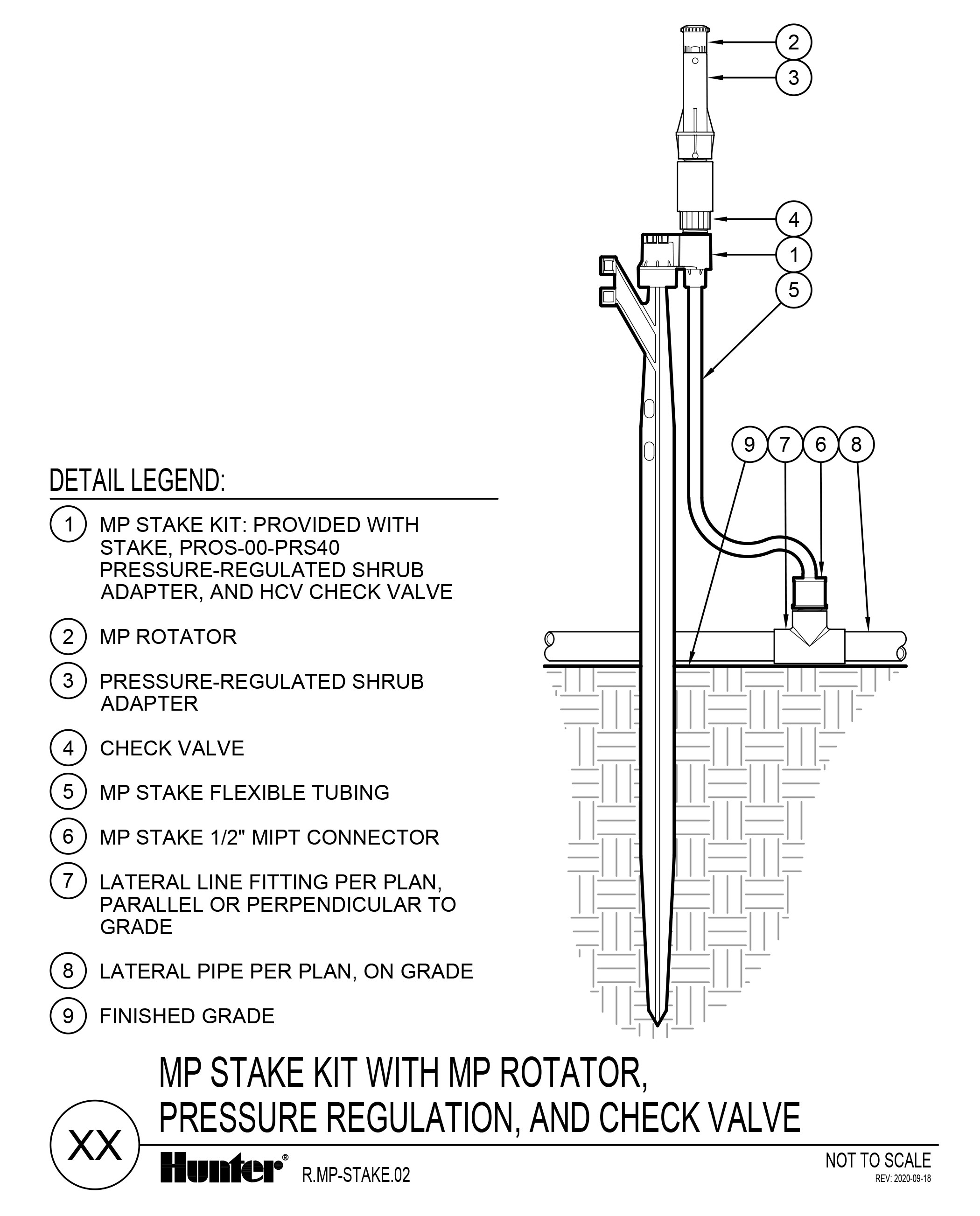 | MP-STAKE-PRS40-CV | Kit MP Stake, kit asta preassemblato da 66 cm, tubo da 0,345", raccordo maschio da ½", valvola antidrenaggio HCV e adattatore fuori terra con con regolatore di pressione PROS-00-PRS40 (altezza totale: 86 cm) | + |