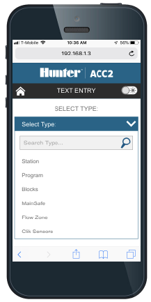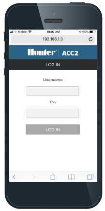 - Aprire le impostazioni del dispositivo mobile per il Wi-Fi e cercare HunterACC-xxxx, dove –xxxx è il numero di quattro cifre univoco mostrato in Network Info (Informazioni di rete), quindi collegarsi.