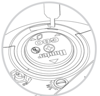 Verificare che il solenoide sia posizionato correttamente nella base. Rimuovere il coperchio ruotando la vite di un quarto di giro in senso antiorario per rilasciare il coperchio. Inserire lo strumento per la rimozione dell'anello elastico (Art. 251000SP) o un cacciavite a testa piatta nella fessura sul lato del coperchio e fare leva per rimuoverlo.