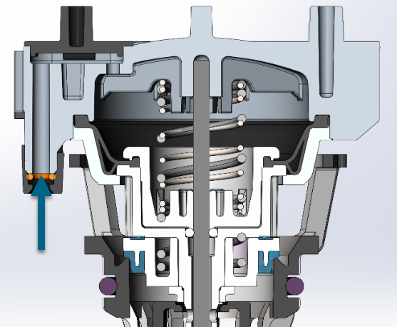Controllare la porta di comunicazione sulla valvola. Verificare che non vi siano danni o deformazioni e che non vi siano detriti nella porta di comunicazione. Inoltre, controllare l'O-Ring all'interno della porta di comunicazione. Verificare che non sia deformato o mancante. Se qualcosa è danneggiato, sostituire la valvola con il componente numero 929700SP.
